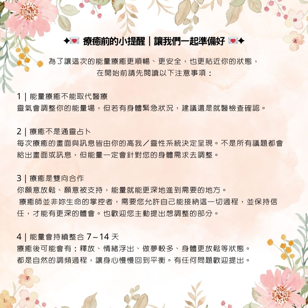 ★請事先詳讀各療癒項目的說明,避免有錯誤的認知跟期待。