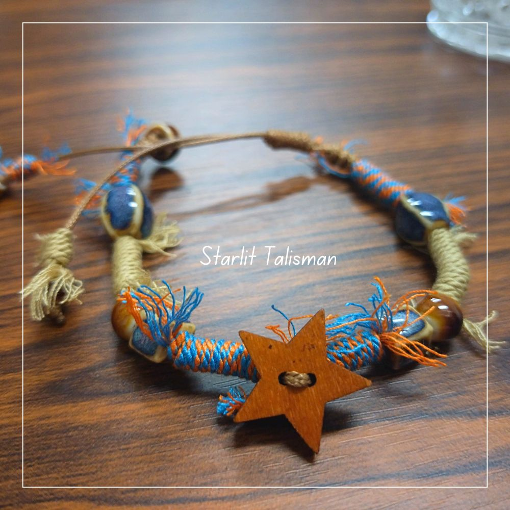 窯語編織系列-《星芒》民族風陶瓷編織手串-吉普賽、波希米亞風,景德鎮陶瓷手工編織上色工藝