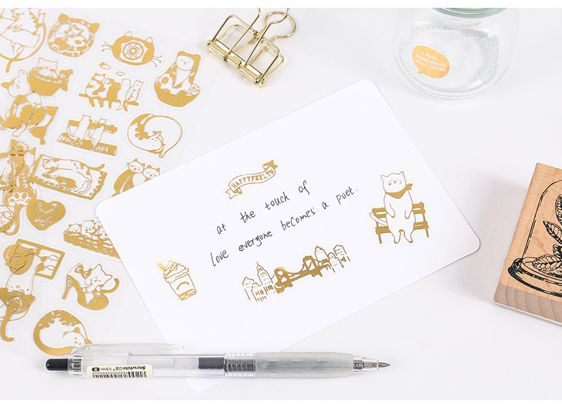 搞怪貓燙金貼紙