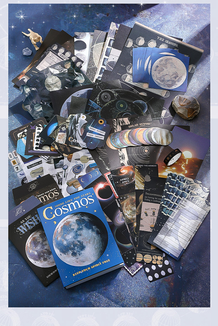 【手帳禮盒-科幻星空】154套組-星空宇宙系列,拼貼、手帳佈置、貼紙、手帳套組、手帳素材、變籤、便條紙、A6筆記本